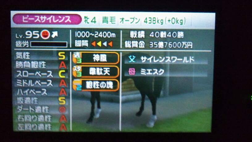 それでもダートだと3、4コーナーのペースが上がるところで遅れたりしてたので、このゲームのレースシーンはよく出来てるなって印象を受けました。